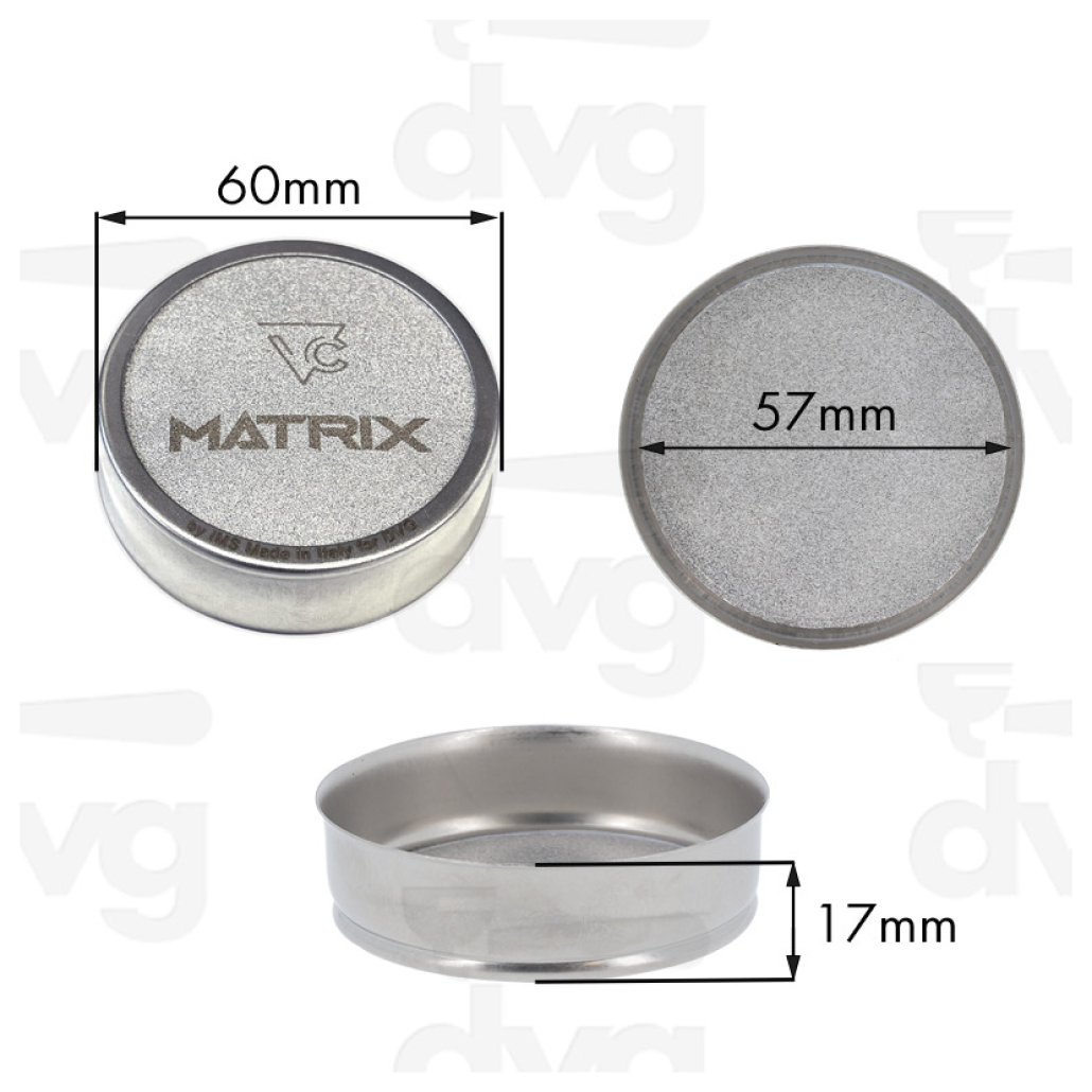 Die MATRIX®-Dusche ist ein innovatives Produkt von Del Creatives, das exklusiv von DVG vertrieben wird. Ihr besonderes Merkmal ist das Filtergewebe aus 50 Lagen AISI 316L-Mikrokügelchen, die Tausende von Wasserkanälen mit einem Durchmesser von 4–5 Mikrometern erzeugen. Dadurch wird das Wasser gleichmäßig im gesamten Kaffeeblock verteilt.