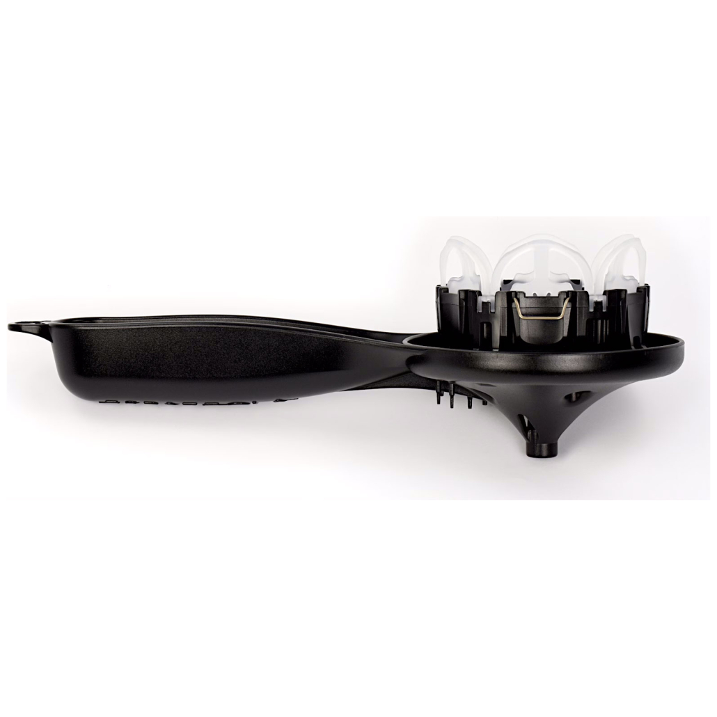 Die Espazzola besteht aus einem steifen Becherteil, der wie ein Siebträger in die Brühgruppe eingehängt werden kann. In diesem Becher wird ein flexibler Einsatz befestigt – die Membran. Die flexible Membran passt sich an die Brühgruppe an. Alle Bereiche in diesem verwinkelten und heissen Teil werden gleichzeitig abgewischt – bis hinauf zur Dichtung und in die Nut für die Siebträgernocken. Gleichzeitig wird das Heisswasser der Espressomaschine genutzt, um die Brühgruppe gründlich durchzuspülen. Dabei wird es über den Becherrand sicher in die Tropfschale geleitet. Mit diesem intelligenten Prinzip dauert die Reinigung aller Oberflächen in der Brühgruppe weniger als 20 Sekunden und ist so einfach wie ein Espressobezug. Und das, ohne grosse Kleckerei oder verbrannte Finger.