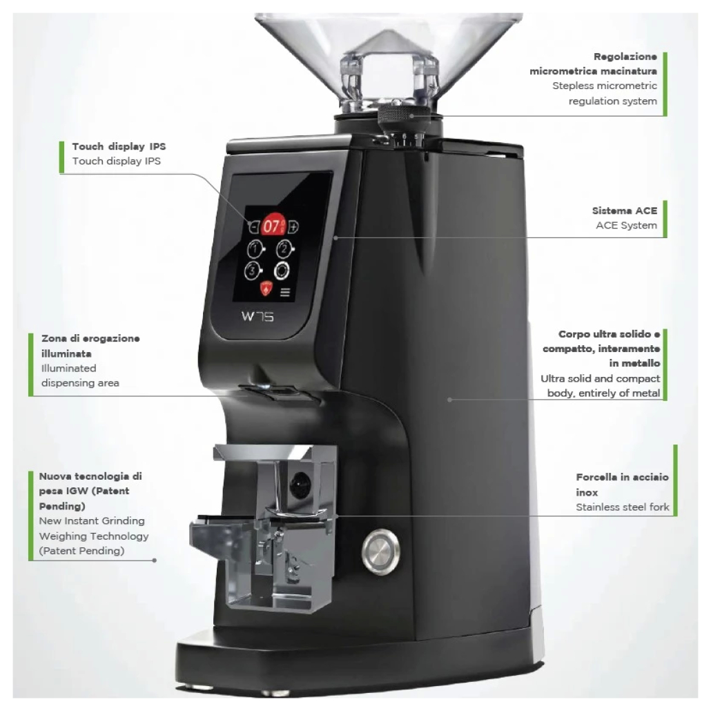 • Grind by Weight (”Instant Grind Weighing Technology“)