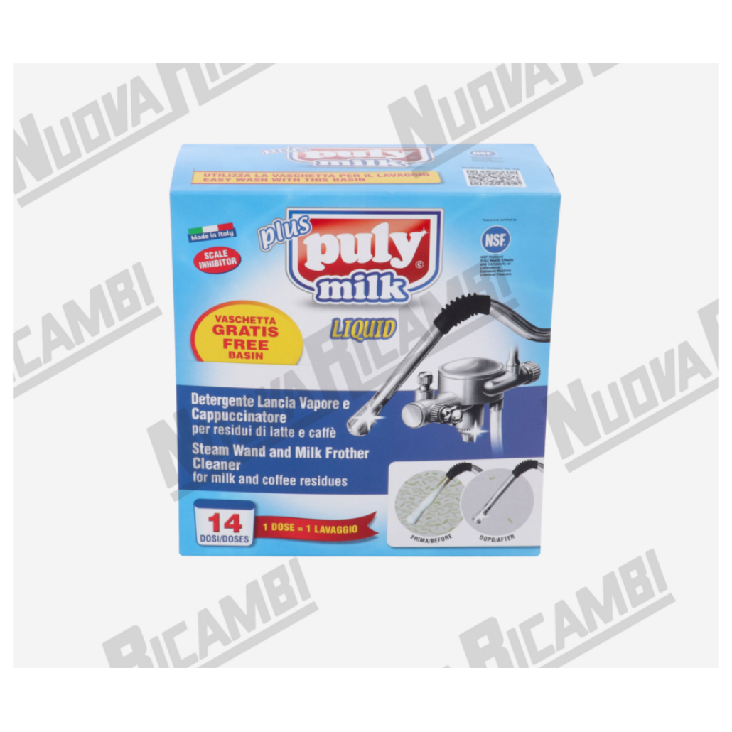 Puly Milk Cleaner wurde entwickelt, um Milchfettablagerungen von Dampfdüsen, Abflussschläuchen, Milchkännchen und allen Geräten zu entfernen, die täglich mit Milch in Berührung kommen.